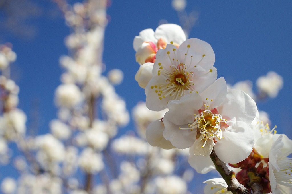 今年の梅の開花は、寒波の影響で、平年より遅い所が多いようです。